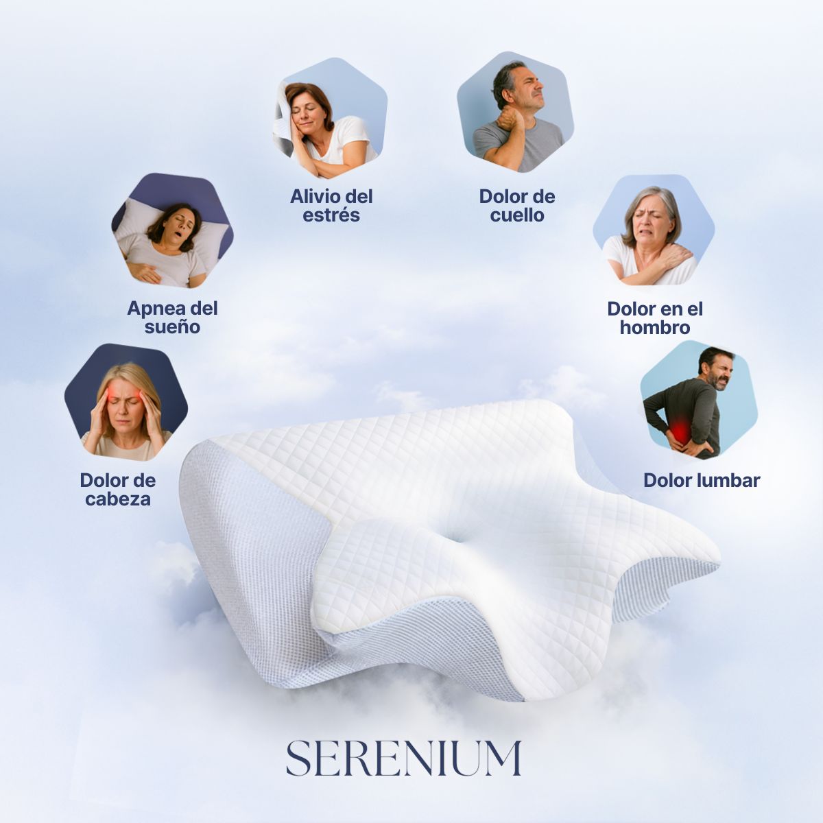 Cómo ayuda OrthoSleep™:Su diseño ergonómico mantiene el cuello alineado, alivia presión y reduce la tensión. Cada noche, ayuda a relajar los músculos y aliviar el malestar.